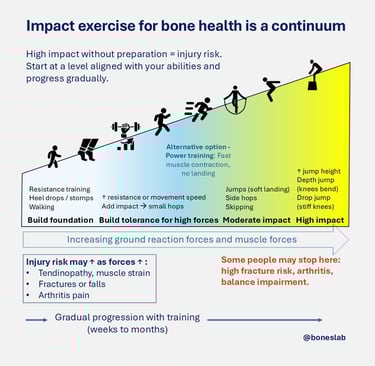 Когато става въпрос за тренировки срещу съпротивление, при хората с увеличена вероятност от фрактура натоварването трябва да е по-ниско от обичайното. На въпроса "колко по-малко трябва да е натоварването?", няма еднозначен отговор, тъй като влияещите фактори са много и са уникални за всеки човек.